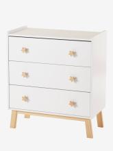 Une belle commode qui convient aux petits espaces avec sa largeur réduite de 42 cm. Elle dispose de 3 tiroirs pour ranger les habits et de poignées en forme d'étoiles qui amèneront une touche onirique à la déco.