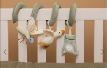 La spirale peut facilement être fixée au parc ou à la barre de la poussette. Ce jouet n’offre pas seulement beaucoup d’amusement et de divertissement, il stimule également la coordination main-œil de bébé.