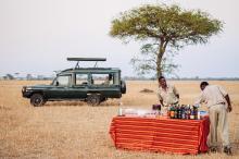 Nous n'irons pas à la chasse aux gazelles. Un simple pique-nique nous contentera amplement dans ce paysage magnifique en pleine savane. Que rêver de mieux qu'une bonne tartine au milieu des bêtes sauvages. La Wildlife !