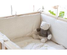A la fois déco, confortable et anti choc, le tour de lit / tour de parc rassure les enfants en les entourant de douceur et en reproduisant le cocon de la maternité. Bébé pourra s’évei