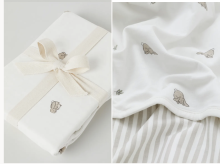 Plaid en jersey de coton doux, idéal pour le landau ou une sieste à la maison. Modèle de forme carrée avec différents motifs sur l’endroit et l’envers. Coins arrondis et biais de couleur neutre.
