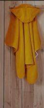 Serviette rectangulaire sans manches et avec capuche couleur miel déjà commandée/payée car il fallait profiter de l’organisation d’une démo. A me rembourser.