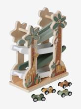 Le toboggan des animaux TANZANIE en bois FSC® vert - Les enfants passeront de longs moments à observer les voitures dévaler de ce toboggan en bois ! Après avoir franchi chaque rampe, la voiture se retourne et con