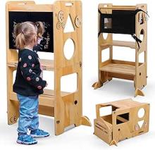 Olvy Kids 3-en-1 Tour d'apprentissage Montessori – Tabouret en Bois Pliable – Marchepied Enfant 3 Marches – Tour d’Observation Sécurisée – Escabeau Montessori dès 1 an : Amazon.fr: Bébé et Puériculture