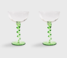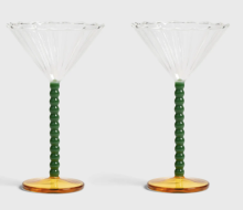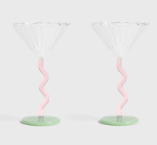 The stunning look of this set of 2 curved coupe glasses makes them suitable for any special occasion. The coupes are formed from delicate glass, with the coloured glass and subtle shape combination giving them a unique look. These impressive coupes can be used for champagne, water and other drinks, as well as for ice cream and desserts.