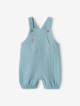 Salopette bébé naissance en gaze de coton doublée denim bleached -