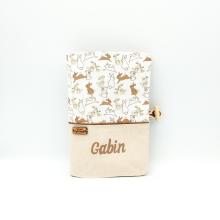 Protège carnet de santé aux motifs d'adorables petits lapins, personnalisé avec prénom.