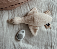 Peluche oie produisant différents sons pour rassurer bébé (bruits blancs, battements de coeur, cours d'eau).