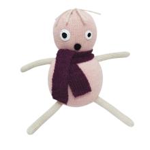Le doudou Gorby est tricoté à la main, et la marque soutien le commerce équitable en donnant un bon travail aux tricoteuses boliviennes à un juste prix et en utilisant de la laine de qualité