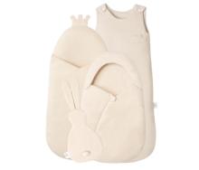 Pour accompagner votre bébé dans son développement, le pack contient: 1 Cocon mousse de crème T1 - Mon premier cocon- de 0 à 1,5/2 mois; 1 Cocon mousse de crème T2 - de 1,5 mois à 6 mois; 1 Doudou Lapin Souris.