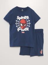 Un pyjama à l'honneur de l'homme araignée ! - Tee-shirt 'Spiderman' - 100% coton - Manches courtes - Encolure ronde - Finitions bords-côtes - Short assorti - Couleur unie - Taille élastique