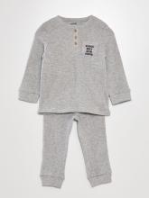 Craquez pour cet ensemble pyjama mignon pour bébé ! - Ensemble pyjama - 2 pièces - T-shirt en coton gaufré - Col rond - Manches longues - Patte boutonnée devant - Poche 'Douce nuit mon cœur' - Finitions bords-côtes - Pantalon assorti en coton - Taille élastiquée - Finitions bords-côtes