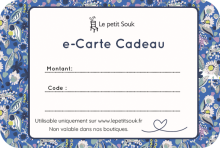 Carte cadeau pour l'un de nos magasins d'enfant préféré! Jouets, déco, peluches, habits,... il y a tout ce qu'il faut!