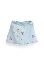 Jupe-short en tissu léger, aspect jean, ornée d’une broderie de fruits sur l’avant | C&A
