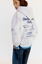 Sweat-shirt gris avec motif chien et texte contrastant, avec capuche, poche kangourou sur le devant et confectionné en mélange de coton.