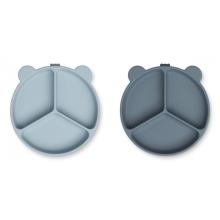 Liewood - Set de 2 assiettes à compartiments avec ventouse Stacy - Sea blue & whale blue mix - Sebio