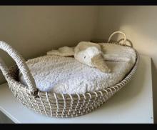 Panier à langer/couffin avec matelas en bambou, deux protèges-matelas et deux draps-housse.