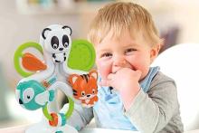 Une amusante roue musicale avec des animaux pour amuser les tout-petits sur la chaise haute et pendant les repas.