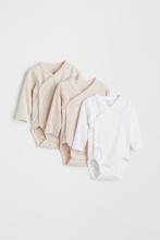 Lot de 3 bodies à manches longues - Beige clair/rayé - ENFANT | H&M BE