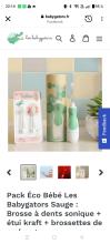 Pack Éco Bébé Les Babygators Sauge : Brosse à dents sonique + étui kraft + brossettes de rechange