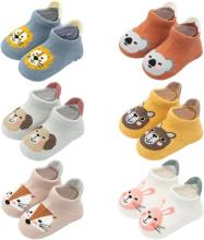 FedMois 6 Paires Chaussettes Antidérapantes en Coton Bébé Enfant Motif Animaux : Amazon.com.be: Mode