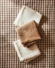 Lot de 3 mousselines en coton pour bébé. Modèle à imprimé étoiles avec fond de différentes couleurs. ⭐️