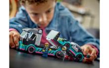 Créez une ambiance électrique avec ce set LEGO City La voiture de course et le camion de transport de voitures (60406), parfait pour les enfants passionnés