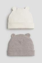 Bonnets en jersey souple et côtelé avec oreilles appliquées et bord replié.