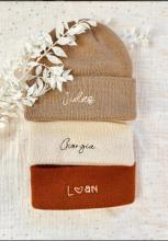 Les bonnets de chez Victoire d’Avril, beaux, chaud, chics et brodés à Lyon. 100% acrylique. Tour de tête : 44 à 50 cm (environ 1 à 3 ans)