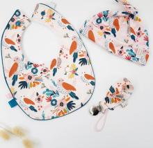 Jeune maman et passionnée par la couture, je prends depuis des années énormément de plaisir à créer tout ce qui se rapporte à l'univers des bébés. Cet ensemble comprend : une couverture(60€), un protège carnet de santé (29€) , un bonnet de naissance (15€) , un bavoir (12€)