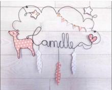 Tortillon en forme de nuage avec un faon et le prénom de bébé pour décorer sa petite chambre ;)