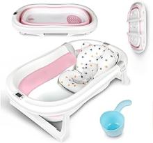 EINESIN Grand Baignoire Pliable Bébé avec Thermomètre à eau, Coussin, Rince Tete Bebe, Baignoire Bebe, Pliable Ultra Compacte, baignoire bebe pliable pour les bébés de 0 à 6 ans, 83 X 50 X 21 cm (Rose) : Amazon.com.be: Bébé et Puériculture