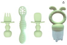 Couvert D’apprentissage Pour Bébé Dès 6 Mois – Tétine À Fruits – Découverte Des Saveurs – Cuillère Et Fourchette Pour Bébé – Grignoteuse Pour Bébé – Sans BPA – Soulage Les Gencives Et Les Dent