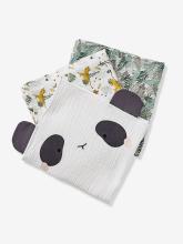 Le kit essentiel pour les bains de bébé. En éponge. Avec capuche. Broderie fantaisie à l'avant. Imprimé 'animaux de la forêt' all over. Gant de toilette assorti