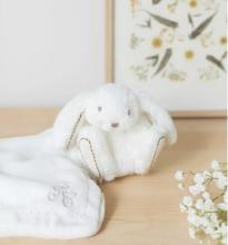 Découvrez notre Augustin le lapin - Doudou écru Micro Velours mixte. Emballage cadeau offert ✓ Livraison gratuite en boutique et offerte dès 200€ d'achats.