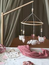 Douceur et délicatesse sont au rendez-vous sur cet adorable mobile du thème Grenier. Des petits animaux et des graphismes un brin rétro tournoient autour de bébé au son d'une douce mélodie.