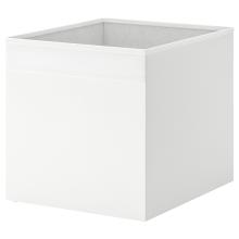 Cette boîte en tissu blanc velours apporte une touche de douceur à notre armoire de rangement des jeux.