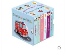 Une petite bibliothèque qui rassemble 6 imagiers : la maison, les émotions, les couleurs, la vie des bébés, les véhicules, le corps.