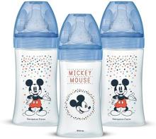 Dodie Lot de 3 Biberons Anti-Colique Initiation+, Mickey, 270mL,0-6 Mois, tétine Ronde, Débit 2