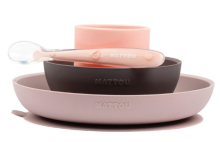 Ce set de vaisselle 100% silicone est un essentiel pour commencer les premiers repas de bébé. Il est composé d'une assiette et d'un bol ventousés ainsi que d'un gobelet et d'un cuillère 1er âge. Sa matière est ultra douce et facile à nettoyer !