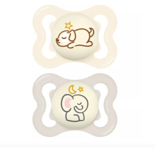 The unique MAM Supreme Night pacifier provides the best support for healthy oral development while also being especially skin-friendly. Thanks to the glow-button it is easy to find in the dark.
