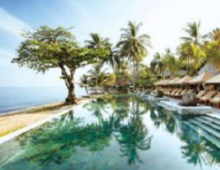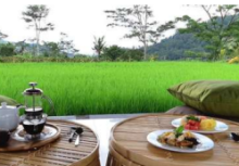Chambre double à la décoration soignée et avec vue sur les rizières, dans un petit établissement avec piscine, spa et restaurant.