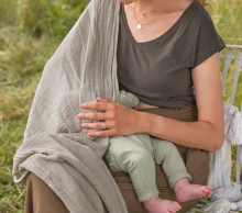 Une jolie écharpe pour allaiter en toute discrétion, trouvée en soldes.