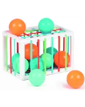 CUBE DE MANIPULATION 12 BALLES 12 balles de matières différentes à faire entrer dans ce cube dont les faces sont remplies d'élastiques. Idéal pour développe...