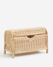 Banc en rotin pour enfants avec espace de rangement pratique sous le siège pour garder les jouets à proximité mais à l'abri des regards.