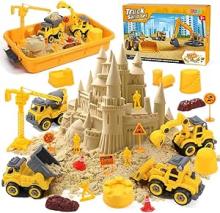 Notre jouets de sable comprend 1KG de sable jouet magique,4 véhicules de construction détachables,4 tournevis,4 moules de sable de château,1 grue,4 modèles d'ouvriers,10 panneaux de signalisation et obstacles et une bac a sable avec couvercle.