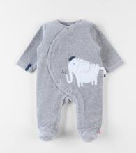 Pyjama 1 pièce éléphant en velours, gris chiné | Noukie's
