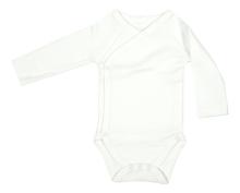 Voilà un des éléments de base de la garde-robe de Bébé : le body cache-coeur blanc cassé à manches longues Essentials de Dreambee.