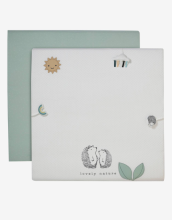Lot composé d'une housse fond de parc animée d’un jouet d’éveil et d'une housse fond de parc imprimée. Compatible avec le matelas fond de parc Vertbaudet 95X95.