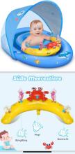 Bouée de natation pour bébé avec toit de protection solaire UPF50+ et jouet, siège de sécurité réglable, pour enfant de 3 à 36 mois, bleu, taille L